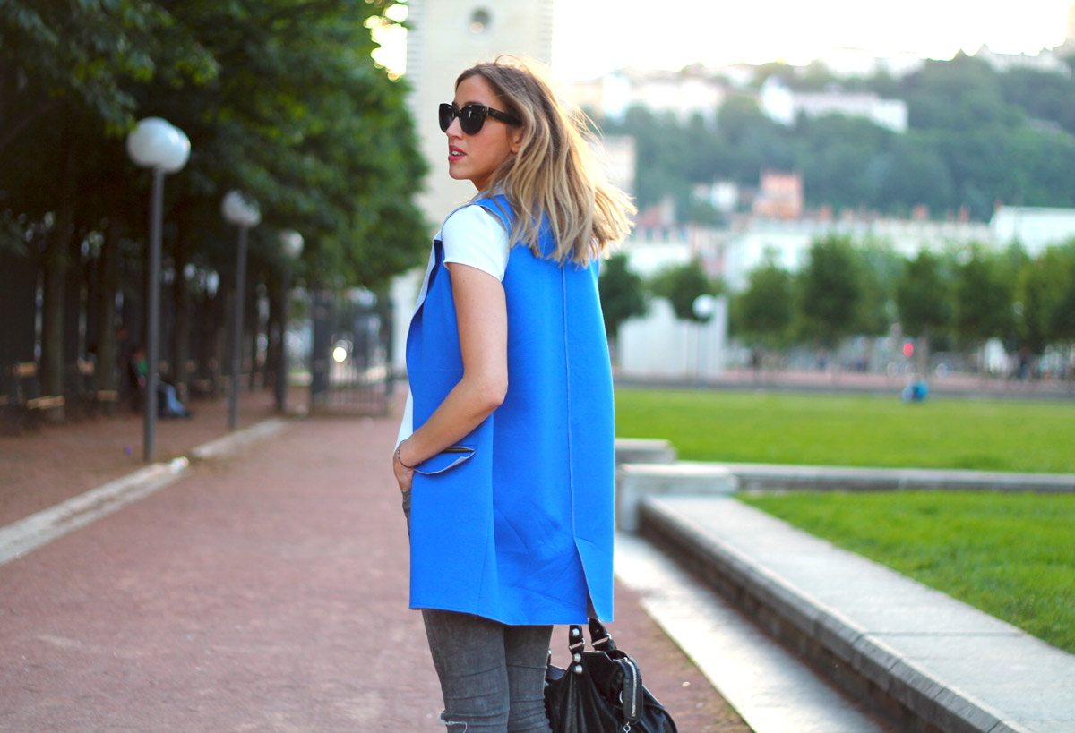 Aujourd’hui, je vais vous parler de la veste sans manches, la pièce que toute fashionista qui se respecte doit avoir dans son dressing ! J’aime la coupe blazer sans manches, de préférence longue, je l’aurais aimée encore plus longue même je crois, avec une couleur « pop » pour booster les tenues les plus simples mais bon…