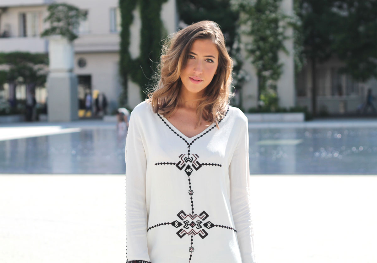 Je reviens aujourd’hui avec un look et une robe bohemian ! Oh yeah… Je ne suis pas vraiment une fille à robes, disons que j’aime être totalement libre de mes mouvements et je suis plus à l’aise dans les combi-shorts ou les shorts car je peux m’asseoir sans faire attention (et ça, ça n’a pas de prix). Mais je me soigne… Quand je choisis une robe je suis donc assez exigeante, la coupe doit être parfaite, facilement portable mais aussi originale. J’ai craqué aux soldes d’hiver dernier sur cette robe de la marque BASH. Déjà, j’adore cette marque, et je trouvais que cette robe avait un esprit ethnique et raffiné à la fois.