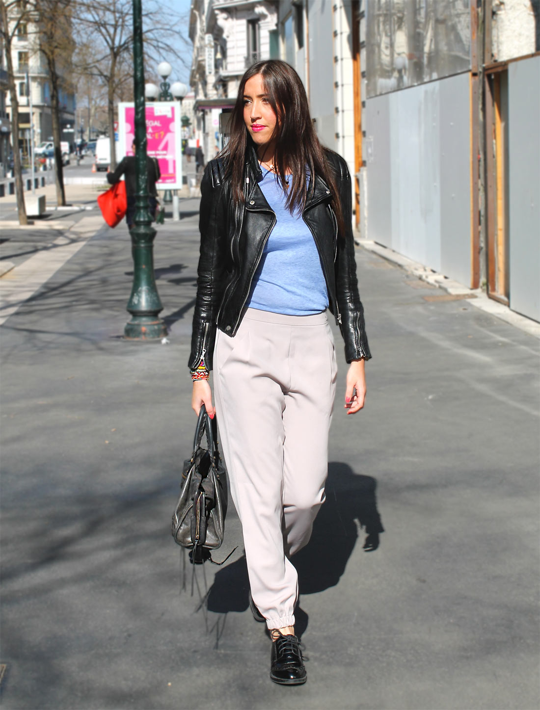 Mode, Streetstyle : Sunny day19 avril 2014 / By Ely En ces jours ensoleillés, je vous présente mon Streetstyle : Sunny day : Je porte : Perfecto noir – Zara T-shirt bleu chiné – Primark Pantalon – Topshop Chaussures – Zara Sac – Balenciaga Partager :E-mailPlusFacebook 000no comment